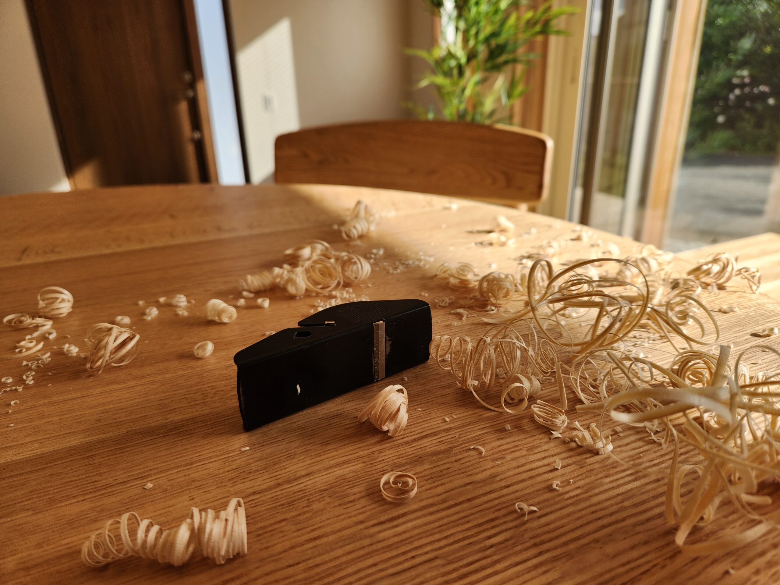 道具はホームセンターで購入した「ミニかんな」です。手のひらにすっぽり入るミニマムツールですがこれがまたよく削れる!かなり優れものです。