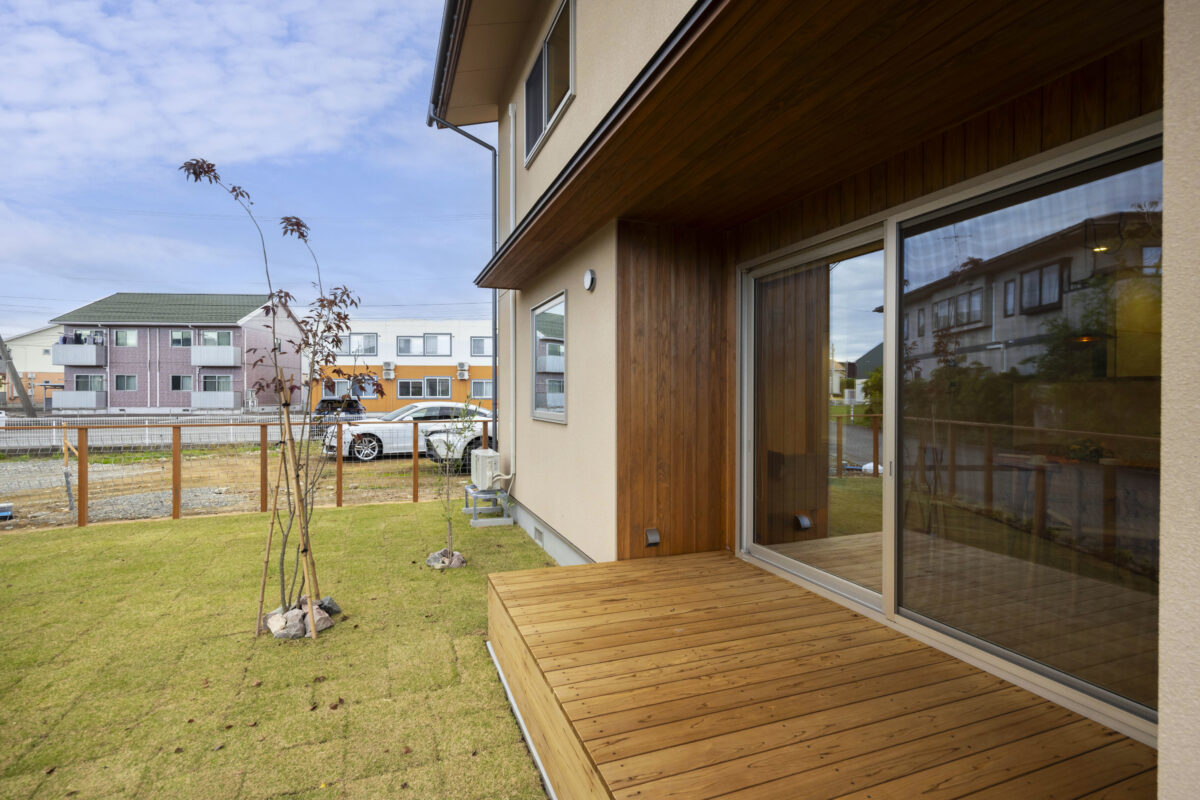 KUMUKUのモデルハウスのリビングの外側はこんな感じです。どうでしょうか👇