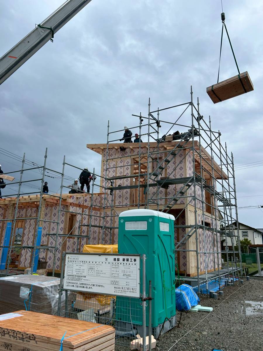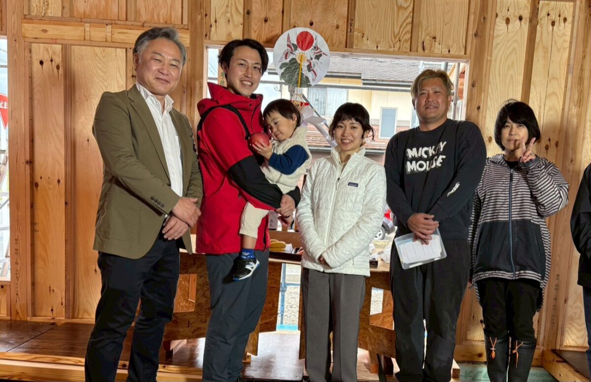 土地の造成で少し着工が遅れたこともあり、上棟を待ちわびて嬉しさも格別です(^-^)