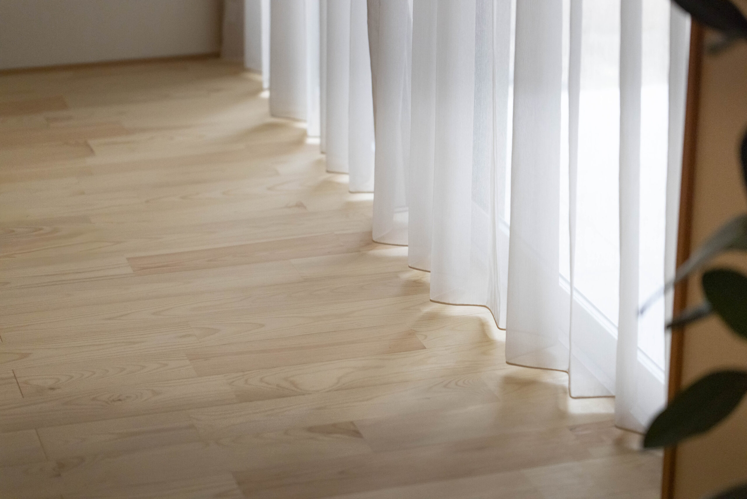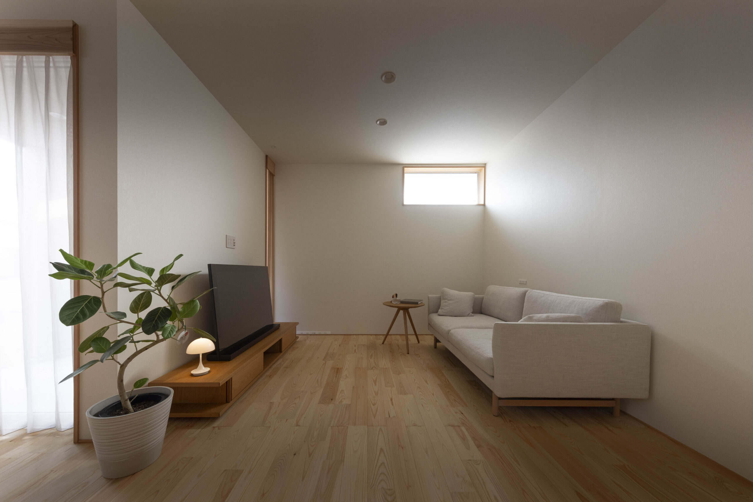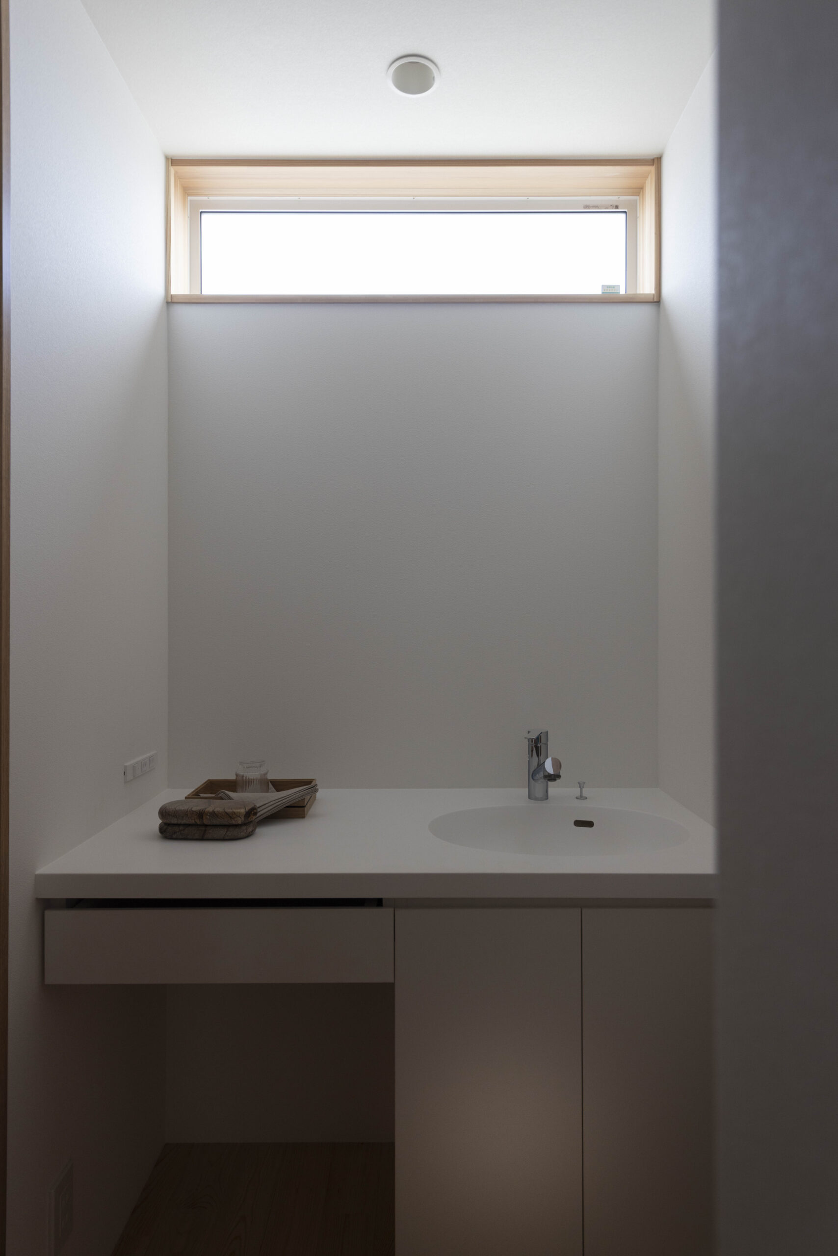 床と造作の木のお色と壁紙の白だけで仕上げています。