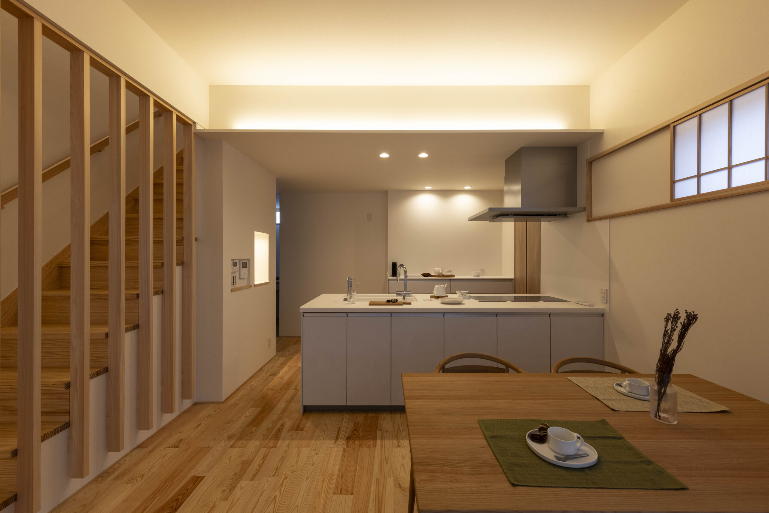 照明のお色が加わり、家具のお色、食器やグリーンのお色が揃ってようやく暮らしのお色が整うようお造りしていきます。