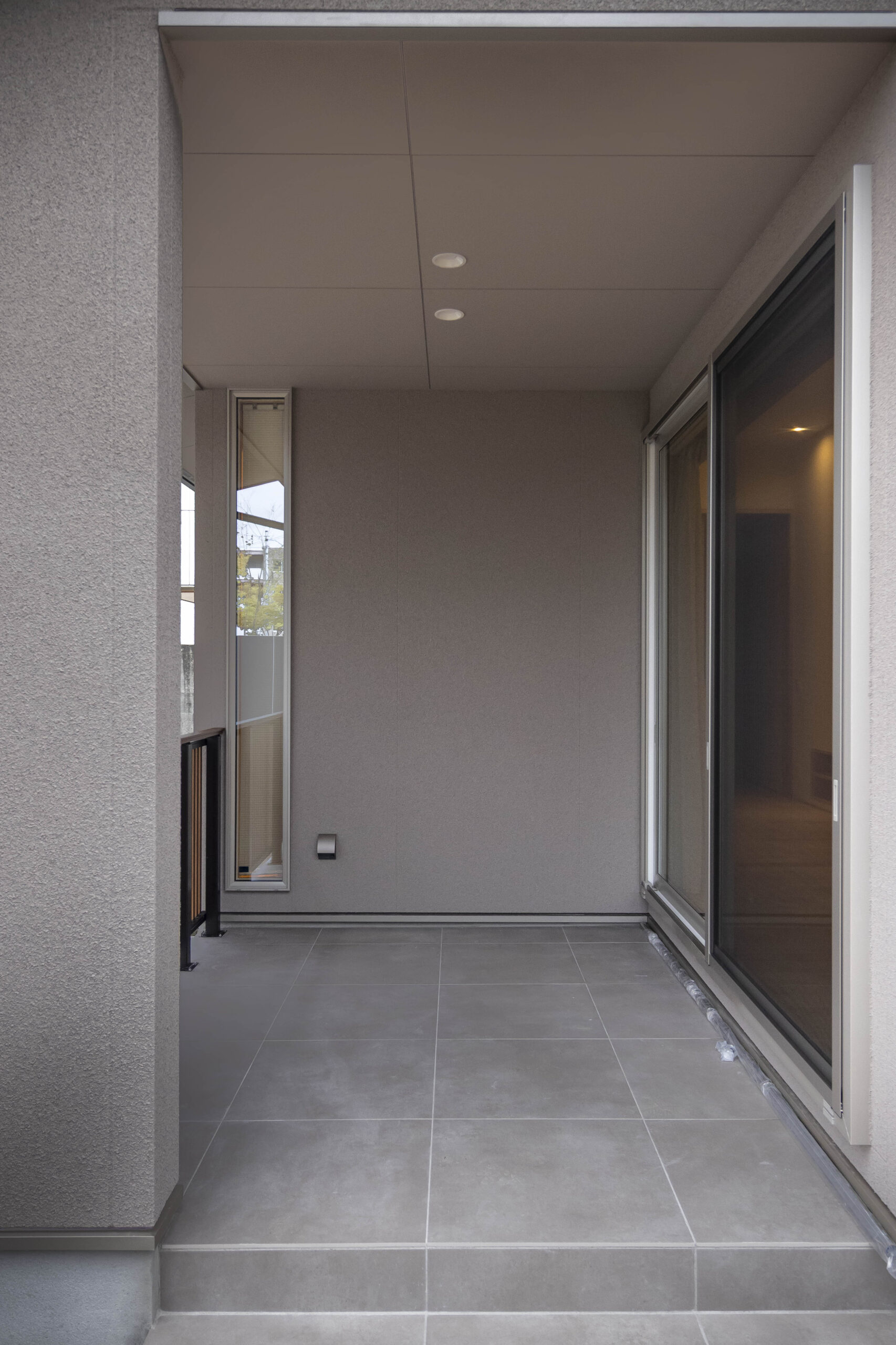街中での暮らしに見合う、タイルデッキ。あえて木のデッキではなく、将来のメンテナンスのことも考えて。